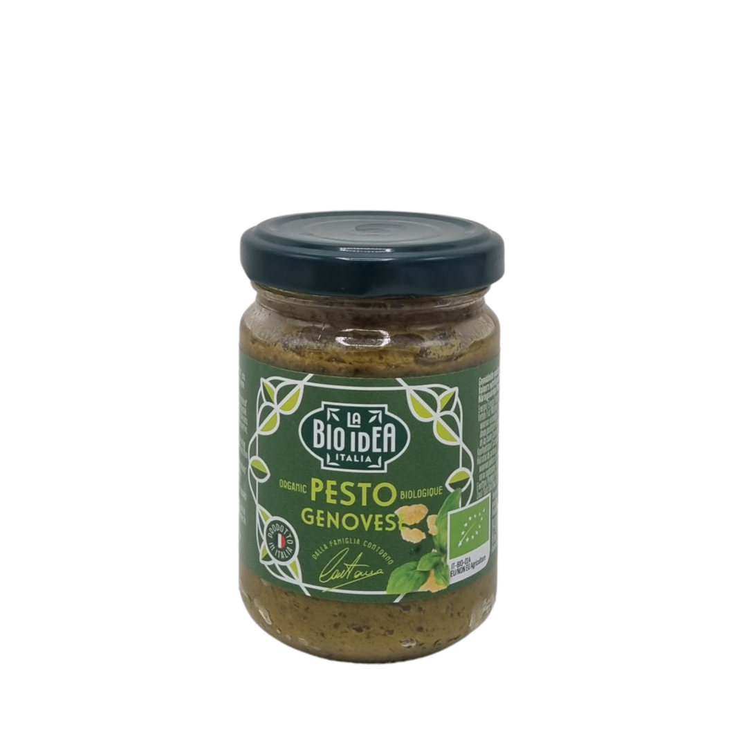 Basilicum* (38%), zonnebloemolie* (36,4%), AMANDELEN* (8,6%), extra vierge olijfolie* (8,5%), Grana Padano KAAS* (MELK) (6%), zeezout, knoflook* (0,65%), citroenzuur (E330) (0,1%).